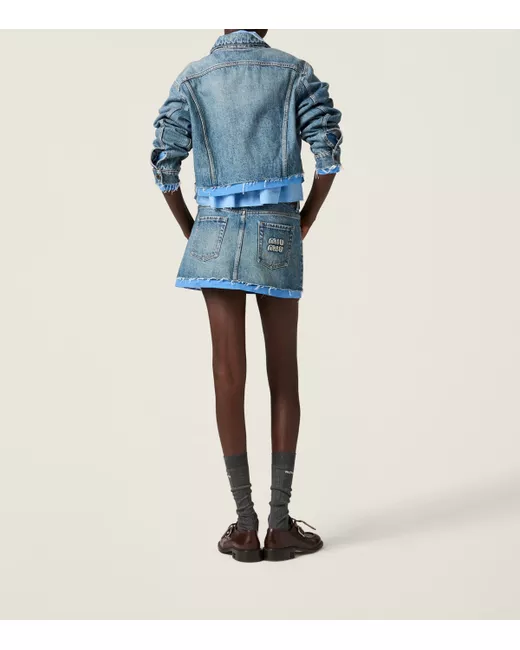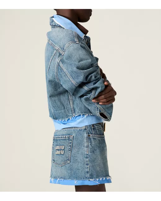 Cool, casual pieces you want to wear everywhere? That's the Miu Miu effect. Crafted in washed denim, this jacket sets itself apart with raw-cut edges trimmed with poplin shirting fabric for a dressed-down take on a style that's persisted throughout the decades.
