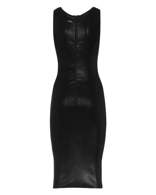black ribbed knit coated finish concealed rear zip fastening scoop neck sleeveless silver-tone logo plaque