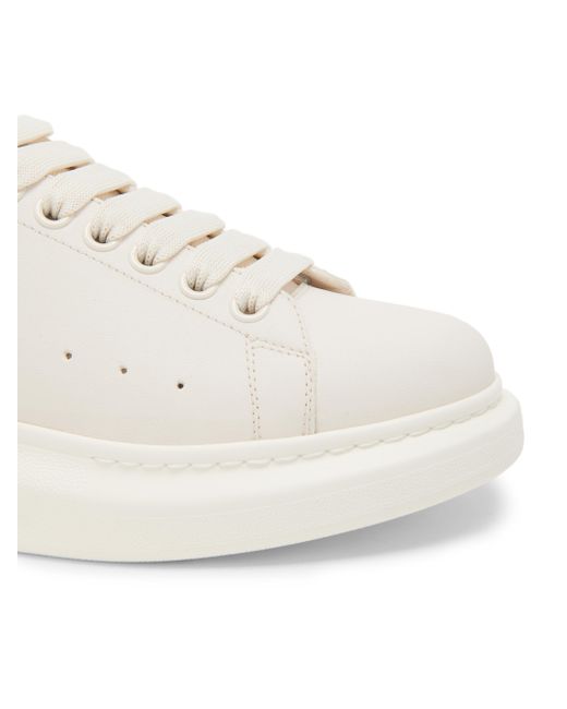 Crafted of leather in Italy, these McQueen sneakers feature a simple silhouette atop a thick sole. This pair is styled with a contrast heel detail, complete with the brand's logo. Round toe Lace-up style Leather upper Made in Italy ABOUT THE BRAND Visionary designer Lee Alexander McQueen launched his brand in 1992, which quickly became synonymous with cutting-edge, avant-garde design. Creative Director Seán McGirr has continued the designer's legacy, bringing precision craftsmanship and a feminine vision to the label's signature edge. Women's Shoes - Alexander Mcqueen Shoes > Mcqueen > Saks Fifth Avenue > Barneys. McQueen. Color: Off White Blue. Size: 6.