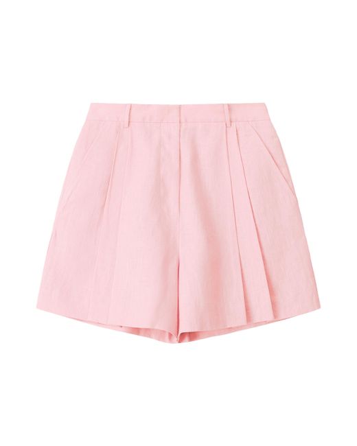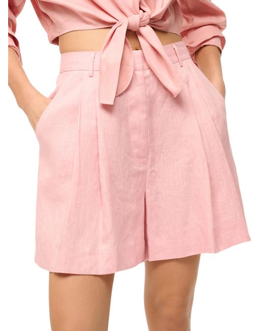 The Cruz high-rise shorts from Staud are crafted of linen for a breezy, lightweight design featuring a pleated design. Belt loops Side slit pockets Zip fly 100% linen Lining: 100% cotton Dry clean Imported SIZE & FIT Model measurements: 5'10" tall Model is wearing a US size Small. Contemporary Sportswear - Contemporary Collections > Staud > Saks Fifth Avenue > Barneys. Staud. Color: Faded Blush. Size: 0.