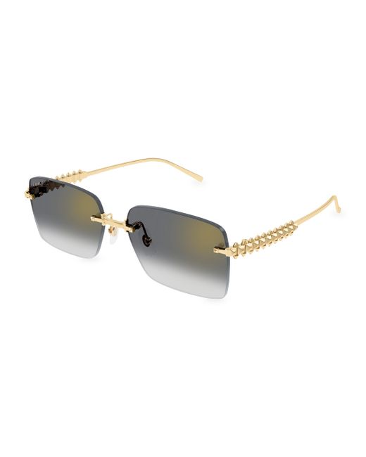 From the Clash De Cartier Collection. These 24K-gold-plated sunglasses showcase a rimless rectangular design, adorned with stud accents for a touch of edgy elegance. 100% UV protection Flash lenses Adjustable nose pads Metal Made in France SIZE 58mm lens width 17mm bridge width 140mm temple length Please note: Lens replacement is non-optional. ABOUT THE BRAND Regarded as one of the most prestigious jewelry brands in the world, Cartier is known for exquisite craftsmanship and timeless designs. Founded in Paris in 1847 by Louis-François Cartier, the iconic jewelry house continues to create sought-after pieces like the celebrated Panthère de Cartier watches. Soft Accessories - Sunglasses > Cartier > Saks Fifth Avenue > Barneys. Cartier. Color: Gold Grey.