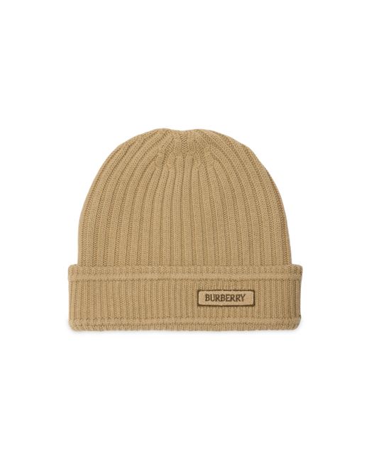 Crafted of wool, this rib-knit beanie from Burberry is finished with a contrasting appliqué logo on the folded brim. 100% wool Spot clean Made in UK ABOUT THE BRAND Founded in 1856 by 21-year-old Thomas Burberry, the brand set out with a mission to stylishly protect against British weather-and Burberry's iconic trench coat was born. In the 1920s, its renowned check pattern was introduced as the coat's lining. Today, under Creative Director Daniel Lee, the heritage brand continues to evolve and create timelessly classic men's, women's and kids' pieces, along with beauty. Soft Accessories - Burberry Soft Accessorie > Burberry > Saks Fifth Avenue > Barneys. Burberry. Color: Sand.