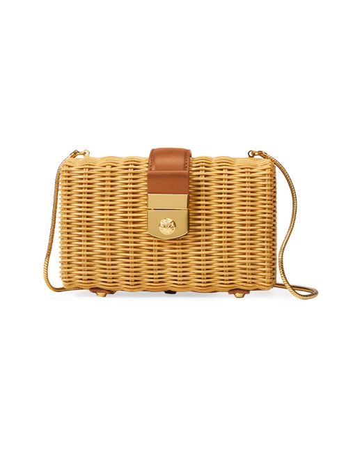 Crafted of rattan and leather, this structured Lock Box clutch from Veronica Beard is designed with a goldtone chain strap. Chain crossbody strap Interior: one slip pocket Protective metal feet Push-lock closure Rattan Trim: leather Imported SIZE About 7"W x 4.5"H x 2.25"D Chain crossbody strap: about 22" drop ABOUT THE BRAND Veronica Beard was founded by sisters-in-law Veronica Miele Beard and Veronica Swanson Beard in 2010. With a strong belief in enduring personal style, the co-designers focus on elevated everyday pieces, like their signature structured blazers and easy-chic dresses. Handbags - Collection Handbags > Veronica Beard > Saks Fifth Avenue > Barneys. Veronica Beard. Color: Natural Hazelwood.