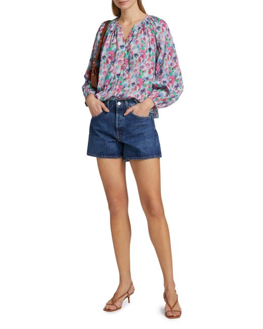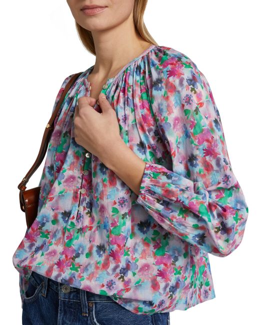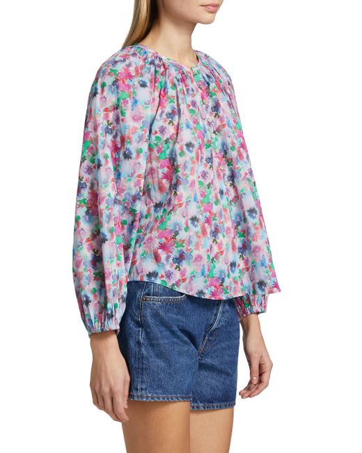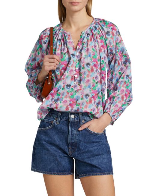 Decorated with a vibrant floral print, this Indi blouse from Rails is styled with a round neck, long sleeves, and a button-front closure. Round neck Long blouson sleeves, elastic cuffs Button-front closure 100% cotton Hand wash Imported SIZE & FIT About 24" from shoulder to hem Model measurements: 5'10" tall Model is wearing a US size Small. Contemporary Sportswear - Casual Separates > Rails > Saks Fifth Avenue > Barneys. Rails. Color: Spring Meadow. Size: Small.