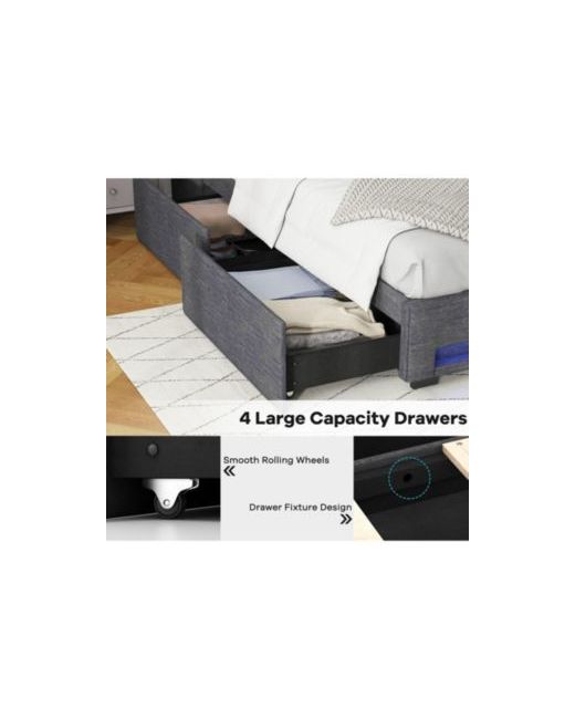 Elevate your space with our stylish bed frame featuring ambient Rgb Led lights on the headboard and footboard, easily controlled via remote or app. With innovative storage solutions, including four roll-out drawers and side pockets, this bed combines elegance and practicality. A built-in charging station keeps your devices powered, making it the perfect blend of comfort and convenience.