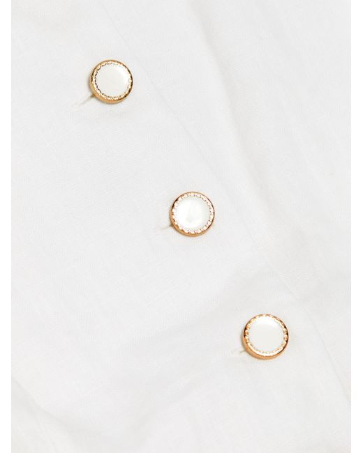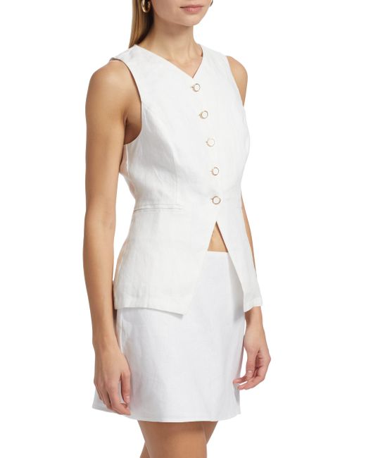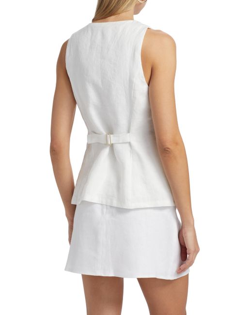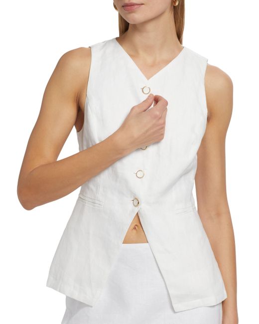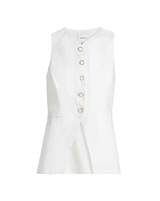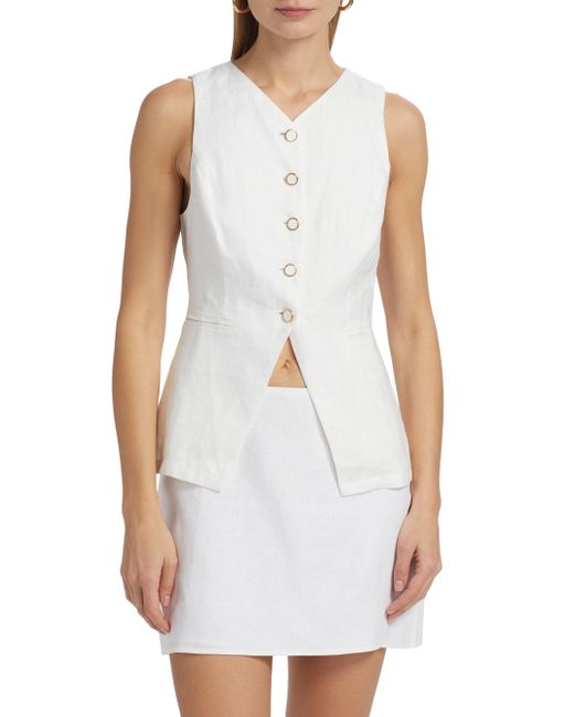 Reformation's Aspen top is crafted of linen in a vest-inspired design, featuring a V-neck and side welt pockets. V-neck Sleeveless Side welt pockets Button-front closure 100% linen Machine wash Imported SIZE & FIT About 25.5" from shoulder to hem Model measurements: 5'10" tall Model is wearing a US size 4. Contemporary Sportswear - Contemporary Collections > Reformation > Saks Fifth Avenue > Barneys. Reformation. Color: White. Size: 0.