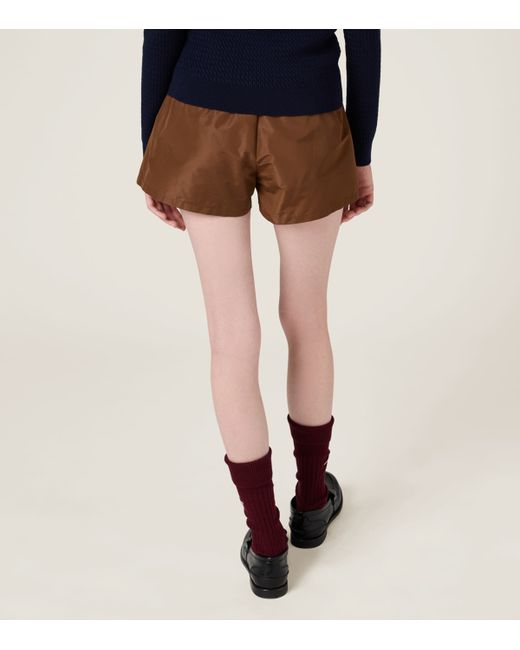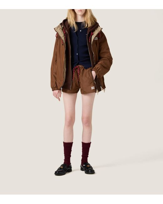 Enamoured with practical dressing and sportswear codes, Miu Miu turns to agile materials and unisex silhouettes for its new-season offerings. These technical shorts are evidence of that, featuring a drawstring fastening and a recycled composition that keeps the House circular as well as innovative.