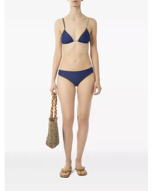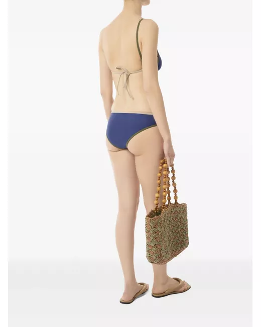 navy blue rear tie fastening adjustable shoulder straps triangle cup Be mindful to try on swimwear over your own garments.