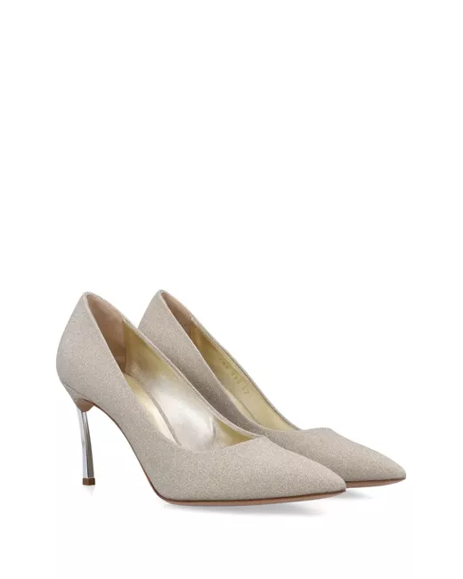 light beige glitter detailing pointed toe high sculpted heel