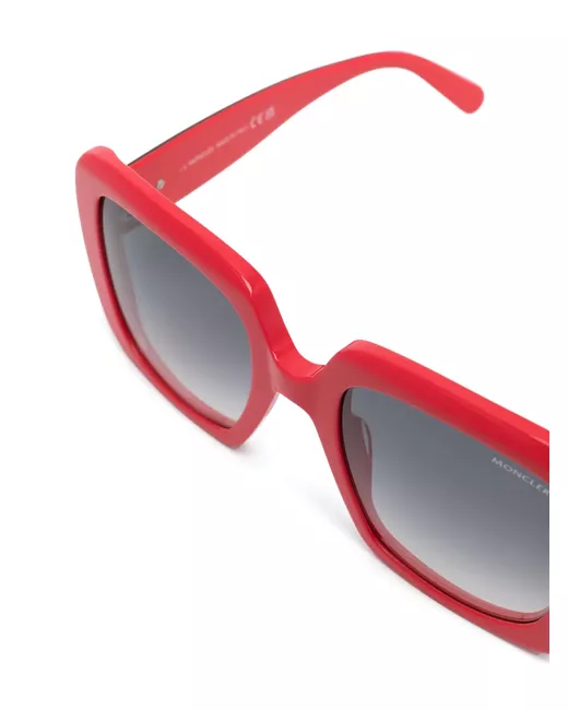 coral red acetate gradient lenses square frame oversize frame logo plaque at the arm straight arms curved tips These glasses come with a protective case.