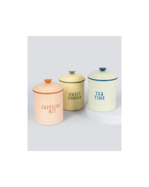 Organize your tea, coffee, and sugar stash with these pastel canisters from Yvonne Ellen. Their vintage enamel look, complete with cheeky slogans, adds a playful touch to any kitchen.