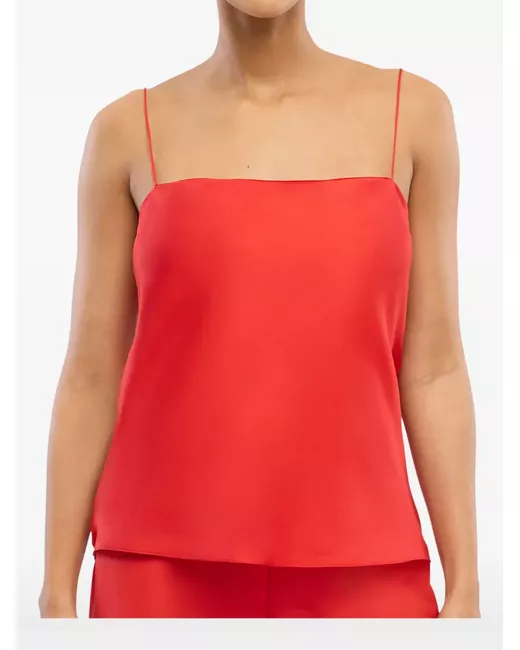 bright red square neck spaghetti straps sleeveless curved hem