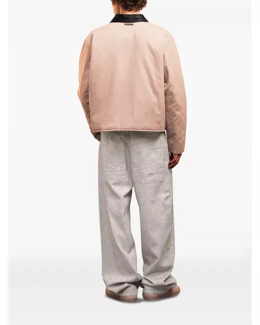 light grey faded effect five-pocket design front button fastening belt loops straight hem