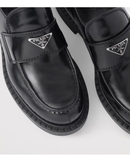Exquisitely made from patent calf leather in Great Britain, these loafers are a testament to the century-long journey Prada has undertaken to perfect its leatherworking. The classic silhouette is finished with the brand's famous Triangle logo affixed to the vamp.