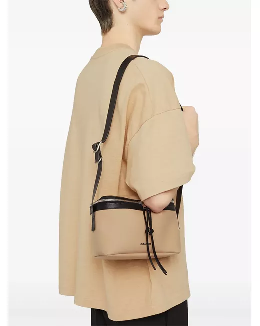 light brown black calf leather cotton logo print to the front adjustable shoulder strap front zip fastening main compartment