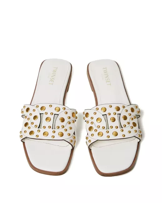 white slip-on style gold-tone stud embellishment cushioned midsole square toe