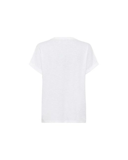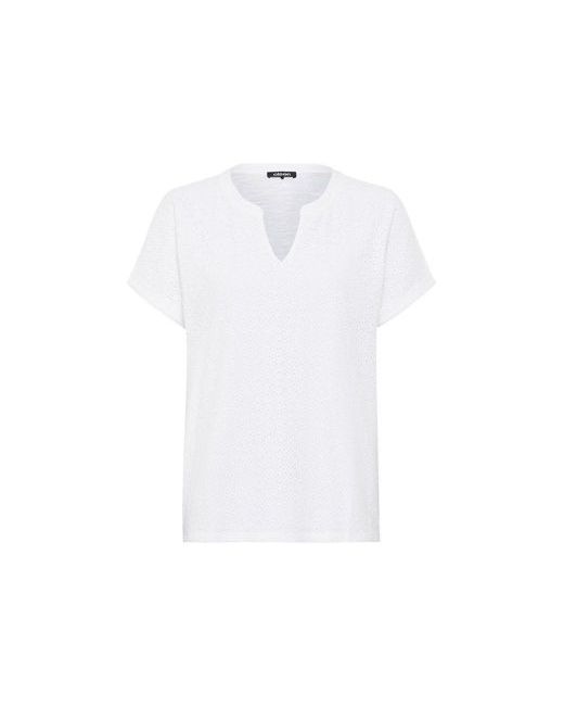 The front of this t-shirt is made from woven fabric with allover embroidery and delicate eyelet detailing, while the back is a stretchy slub yarn jersey.