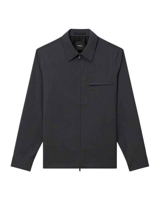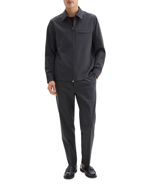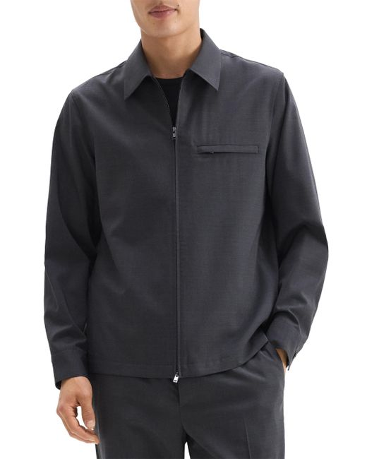 Carfted of stretch Motion wool, this overshirt from Theory is cut for a boxy fit and styled with a chest zip pocket. Spread collar Long sleeves Chet zip pocket Zipper closure 54% wool/45% polyester/1% spandex Machine wash Imported SIZE & FIT Model measurements: 6'2" tall, 40" chest, 31" waist Model is wearing a US size Medium ABOUT THE BRAND For two decades, Theory has nailed the art of polished dressing through its well-tailored pieces. Innovative fabrications and an elevated, minimalist aesthetic make the brand's separates a wardrobe main story season after season. Mens Modern Coll & Outer - Theory > Theory > Saks Fifth Avenue > Barneys. Theory. Color: Charcoal Melange. Size: Small.