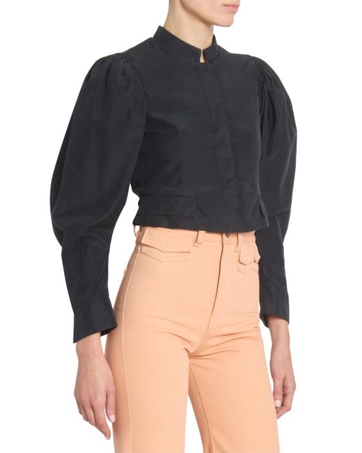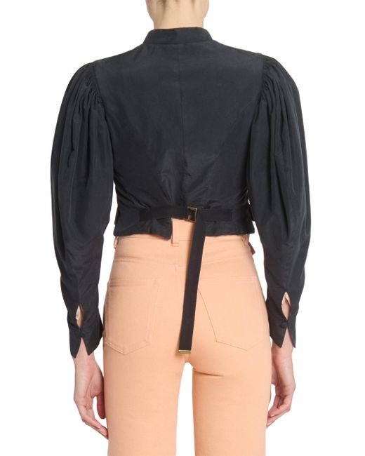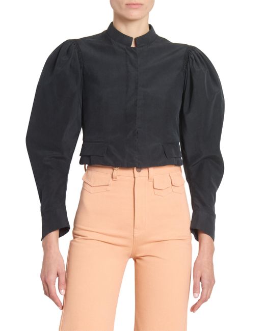 Crafted of luxe silk, Chloé's striking jacket showcases dramatic puff sleeves and back adjustable belt. Stand collar Long puff sleeves, button cuffs Front flap pockets Back adjustable strap Concealed hook-and-eye closure 100% silk Dry clean Imported SIZE & FIT Model measurements: 5'10" tall Model is wearing a US size 4 ABOUT THE BRAND In 1952, founder Gaby Aghion established Chloé as an alternative to couture, and to appeal to the aspirations and empowerment of women. The label is now led by Creative Director Chemena Kamali, who furthers its signature aesthetic of cool, French-girl style. Advanced Designer - Chloe Rtw > Chloé > Saks Fifth Avenue > Barneys. Chloé. Color: Black. Size: 2.