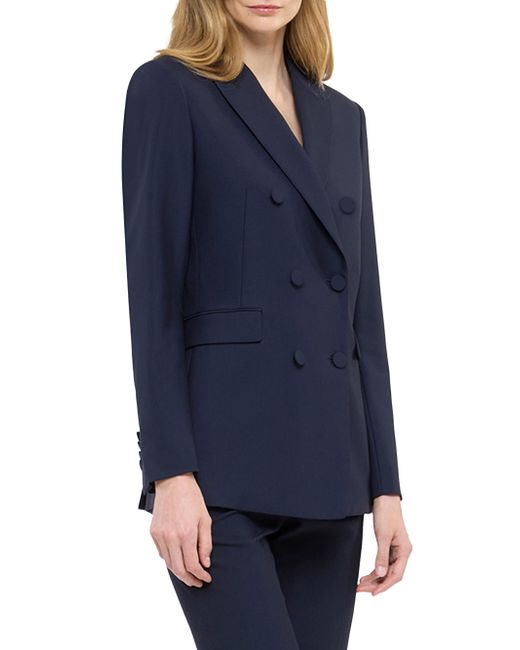 Our sharply tailored double-breasted jacket features flap-front pockets and self-covered buttons. 100% Wool Made in Italy Fully lined Functional four-button cuffs Shoulder pads (non-removable) Interior waist pocket Double vent in back Dry clean sparingly SIZE Runs true to size Model is 5'10'' and wears a size 40. Lsd Rtw - Womens Rtw Lsd Mp > Another Tomorrow > Saks Fifth Avenue > Barneys. Another Tomorrow. Color: Navy. Size: 18.