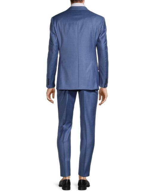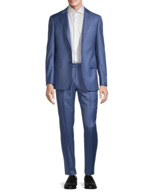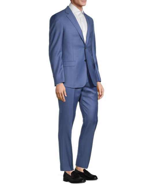 Crafted of virgin wool, this Giorgio Armani suit features classic details including a chest welt pocket, waist flap pockets, and an extended tab waistband. 100% virgin wool. Lining: 100% viscose. Dry clean. Imported. JACKET Notch lapels Long sleeves Two-button front closure Chest welt pocket Waist flap pockets Stacked button cuffs PANTS Extended tab waist Zip fly, hook-and-bar closure SIZE & FIT Jacket, about 30" from shoulder to hem Rise, about 9" Inseam, about 36" Leg opening, about 15" Tailor-ready hems Model measurements: 6'2" tall, 40" chest, 31" waist Model is wearing a US size 40R This brand fits slightly smaller. Consider ordering a size up. Men Luxury Coll - Emporio Armani Sportswe > Emporio Armani > Saks Fifth Avenue > Barneys. Emporio Armani. Color: Blue. Size: 42.