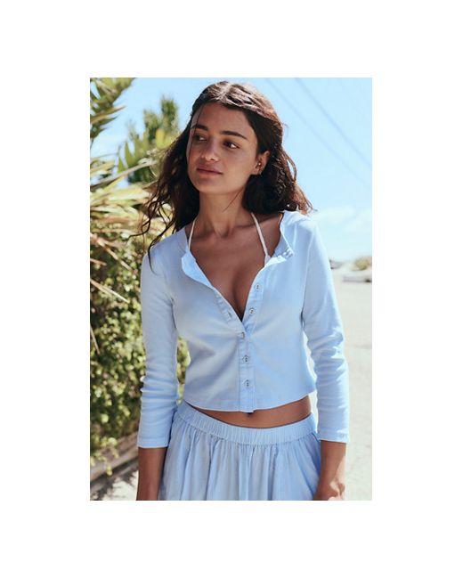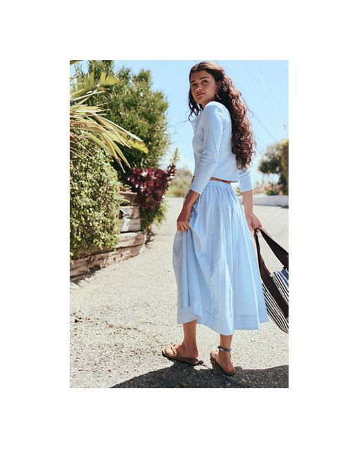 The perfect instant outfit, this sleek set from free-est features a fitted cardigan top and an A-line poplin skirt for a chic, elevated moment. **Fit:** Fitted top, A-line bottom **Features:** Top: Ribbed fabrication, crew neckline, button-front closure, fitted sleeves, slightly cropped; Skirt: Low-rise, shirred elastic waistband, side pockets **Why We ❤ It:** Together or separate, this set makes for a super versatile wardrobe addition. Perfect Tones Set by free-est at Free People in Ice Water, Size: XS