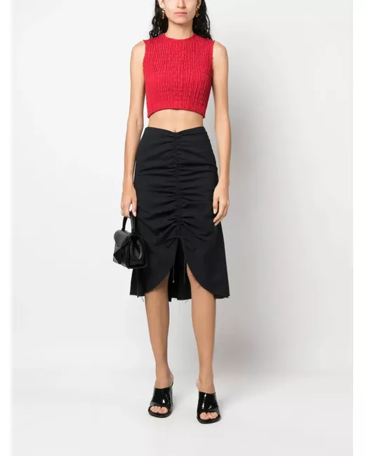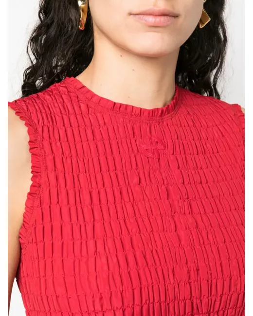 brick red smocked panel gold-tone hardware cropped round neck rear zip fastening sleeveless straight hem