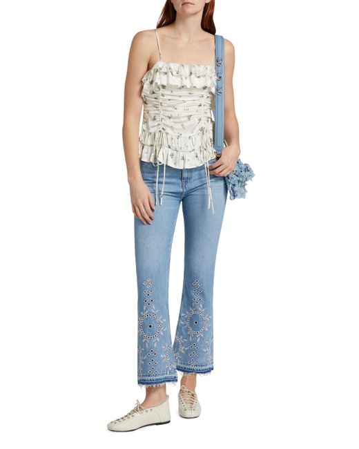 Stretch Denim Cropped Ruffle Top