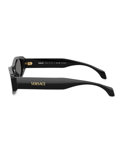 Designed with an oval silhouette, these sunglasses from Versace have solid lenses and embossed logos at each arm. 100% UV protection Solid lenses Includes case and cleaning cloth Acetate Made in Italy SIZE 54mm lens width 19mm bridge width 140mm temple length Please note: Lens replacement is optional. ABOUT THE BRAND Founded in 1978, Versace is instantly recognizable by the signature Medusa head logo, chosen by founder Gianni Versace for its Greek symbolism. The Italian label is known for its luxe, bold clothing and accessories-think gilding, oversized logos and punchy prints. Since taking over artistic direction, Gianni's sister Donatella Versace has maintained the brand's strong identity, with a renewed vision to give customers the ultimate freedom to express themselves. Soft Accessories - Sunglasses > Versace > Saks Fifth Avenue > Barneys. Versace. Color: Black.