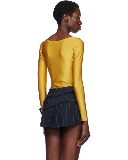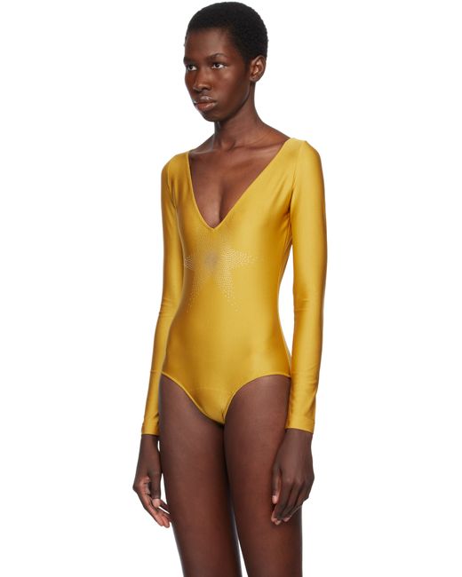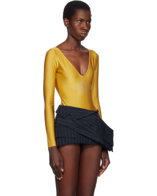 Nylon-blend lamé jersey bodysuit. · Elasticized plunging V-neck and hem · Studded graphic at front · Press-stud fastening at bottom Supplier color: Gold