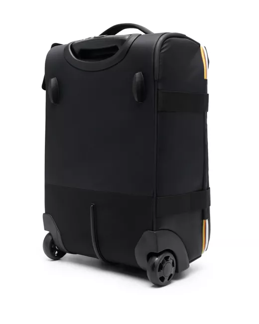 black ripstop texture waterproof water-repellent windproof two-way zip fastening telescopic handle single top handle single flat side handle luggage tag logo patch to the front adjustable side straps with buckle fastening main compartment internal zip-fastening pocket two wheels