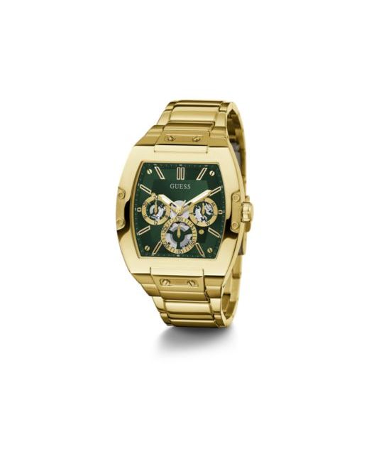 Skeleton dial details keep this phoenix on the rise. Featuring a gold-tone barrel shaped case with a green multi-function dial.