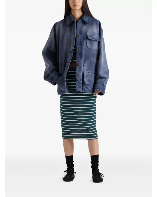 deep blue button-up front large patch pocket pointed collar side patch pockets corduroy collar detailing