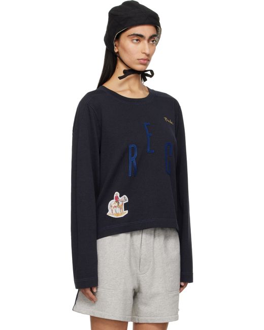 Heavyweight cotton- and lyocell-blend jersey sweatshirt. · Rib-knit crewneck · Logo embroidered at chest · Felted text appliqués at front · Graphic patch at hem · Modified saddle shoulders · Contrast stitching in blue This item is part of a limited run of 90. Supplier color: Navy