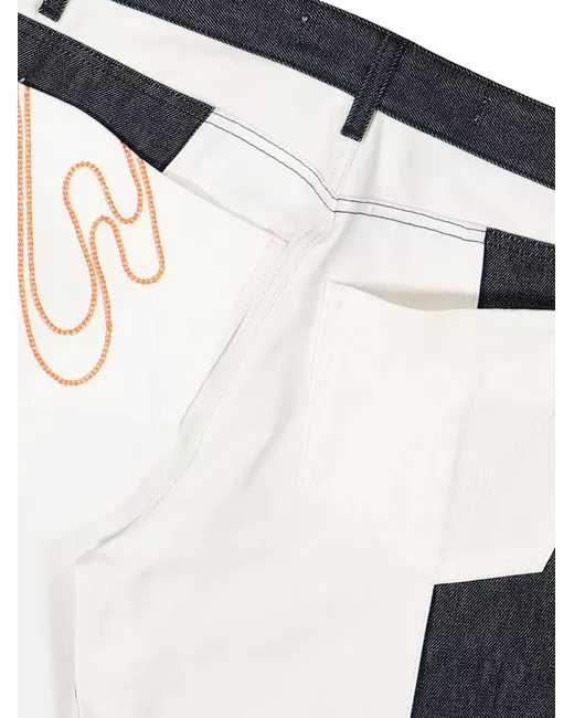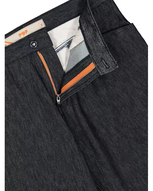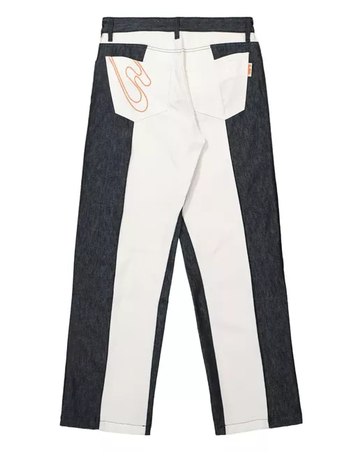 indigo blue concealed fly and button fastening classic five pockets belt loops appliqué logo