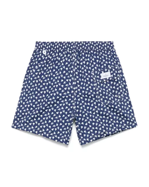 navy blue elasticated drawstring waistband two side inset pockets rear flap pocket Be mindful to try on swimwear over your own garments.