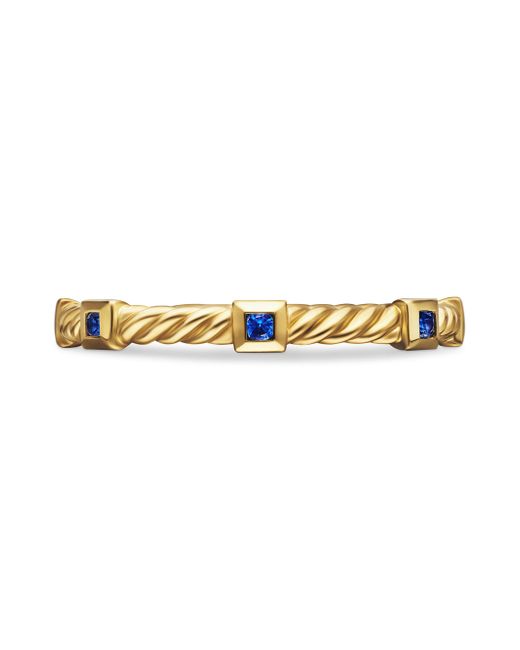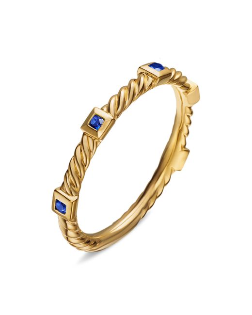 David Yurman's iconic Cable motif beautifully adorns a universal symbol or shape, creating a modern talisman meant to be collected, combined and treasured. 18-karat yellow gold Pavé rubies, 0.13 total carat weight Ring, 2mm Imported ABOUT THE BRAND David, a sculptor, and his wife, Sybil, a painter, launched their innovative jewelry brand in 1980 in New York City. Since then, the American design house has pioneered cutting-edge collections-from its iconic combination of sterling silver and diamonds to signature pinky rings. Today, with their son Evan, the Yurmans continue to deliver timeless pieces inspired by nature, art, ancient symbols and Manhattan's stunning architecture. Lsd Jewelry - David Yurman > David Yurman > Saks Fifth Avenue > Barneys. David Yurman. Color: Light Blue Sapphire. Size: 7.