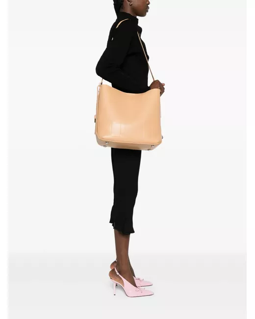 light beige magnetic fastening adjustable shoulder strap removable pouch This piece comes complete with a protective dust bag.