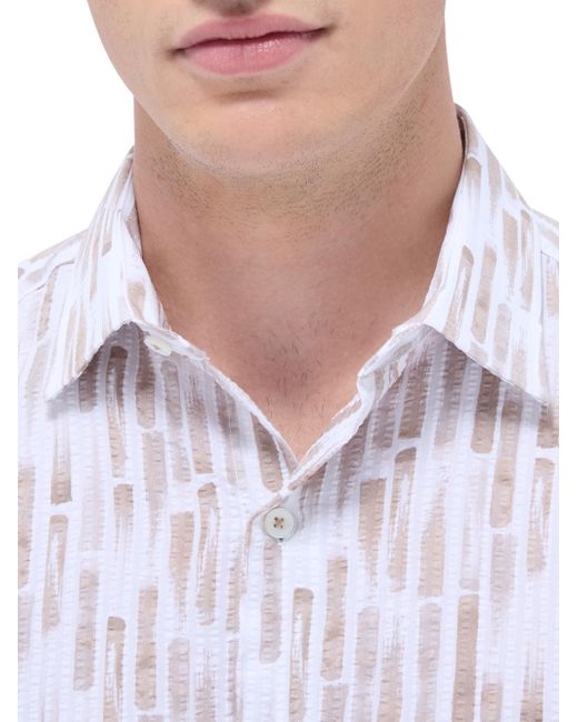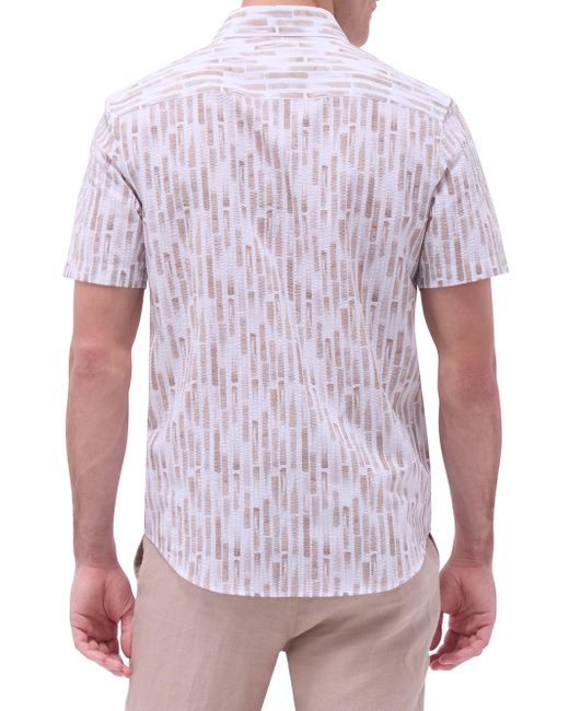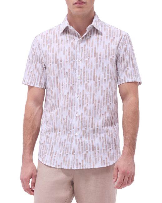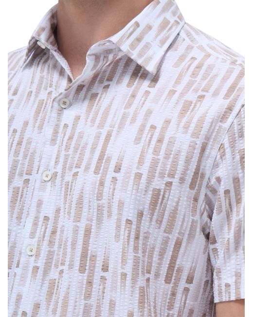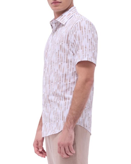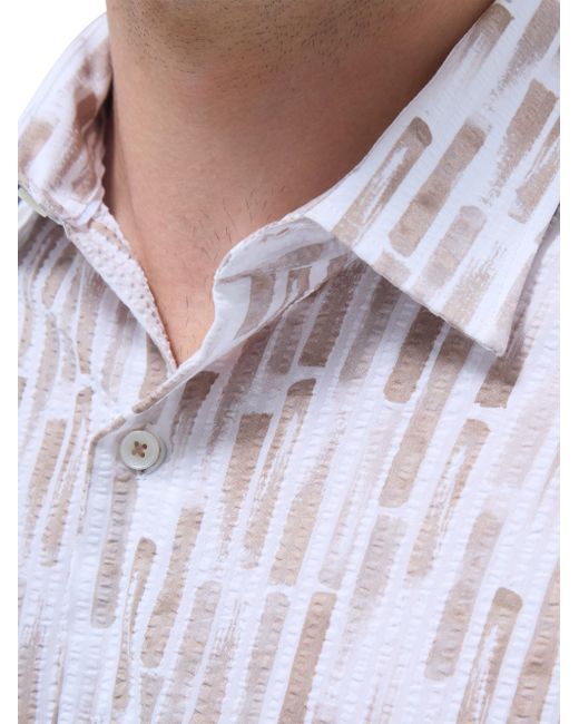 Cut for a tailored fit, the Orson button-front shirt from Bugatchi is crafted of cotton seersucker in a painterly print. Spread collar Short sleeves Button-front closure 100% cotton Machine wash Imported SIZE & FIT Model measurements: 6'2" tall, 40" chest, 31" waist Model is wearing a US size Medium. Mens Modern Coll & Outer - Contemp Classic Collecti > Bugatchi > Saks Fifth Avenue > Barneys. Bugatchi. Color: Camel. Size: Small.