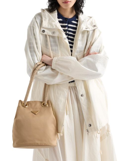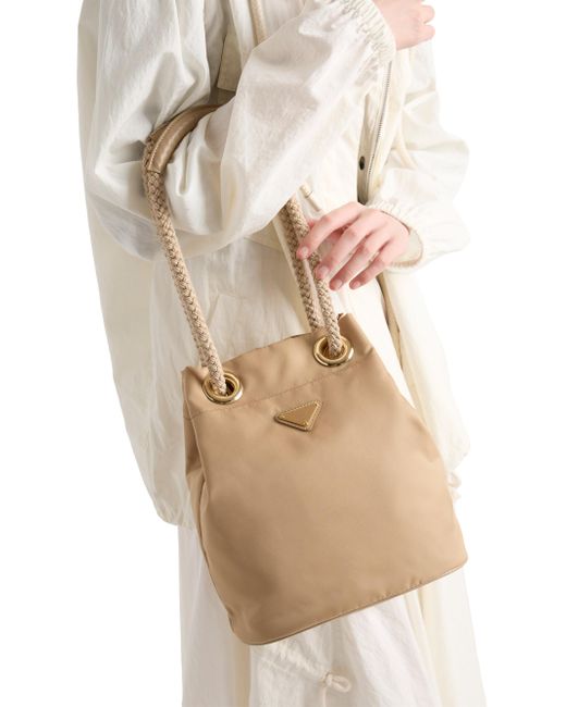 ONLY AT SAKS. Unusual combinations animate this Re-Nylon bag inspired by the timeless codes of nautical style. Sliding cord handles underline the versatile character of the accessory that can be worn by hand or over the shoulder, completed by the enameled metal triangle logo. Sliding cord and leather handles, drop from 23 to 50 cm Metal hardware Enameled metal triangle logo on the front Logo-print Re-Nylon interior with zipper pocket Imported 100% Recycled Polyamide 9.2'' W x 11'' H x 6.5'' L. Lsd Handbags - Prada Handbags Access > Prada > Saks Fifth Avenue > Barneys. Prada. Color: Light Brown.