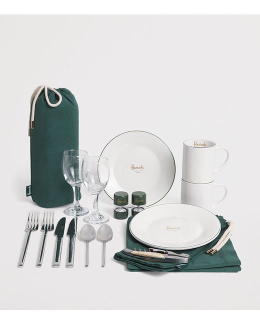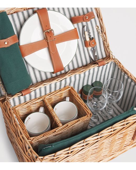 Ensure a little luxury alongside your al fresco meals with this Harrods fitted picnic basket for two. Including all the essentials - ceramic plates and mugs; wine glasses; stainless steel cutlery and napkins - the event is elevated thanks to a corkscrew, bottle cooler and a thermal flask for hot drinks, all beautifully presented in a fabric-lined wicker basket.