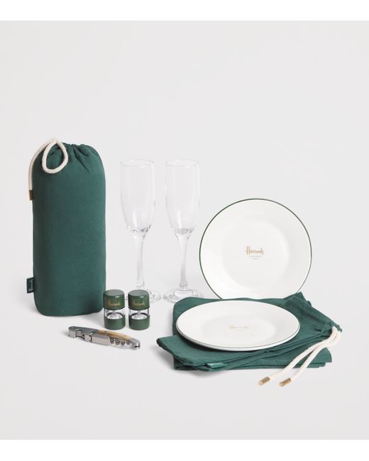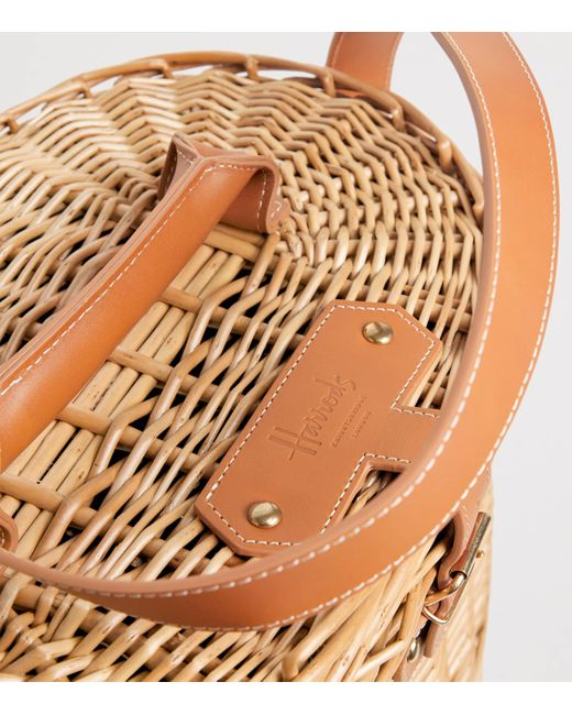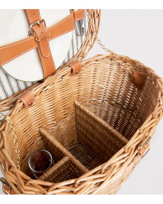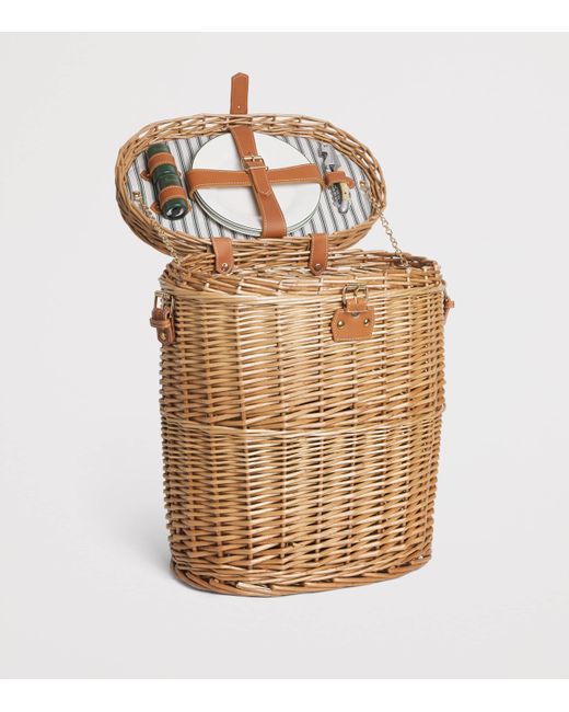 Ensure a little luxury alongside your al fresco meals with this Harrods fitted Champagne picnic basket for two. Including all the essentials - ceramic plates, stainless steel cutlery and fabric napkins - the event is elevated thanks to a corkscrew, bottle cooler and glass Champagne flutes, all beautifully presented in a fabric-lined wicker basket.