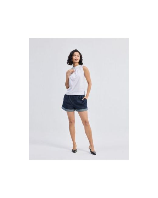 The little details make all the difference in this white turtleneck top with gathered neck details. The soft, eco-friendly fabric and the white hue make it a stylish, versatile addition to your summer wardrobe.