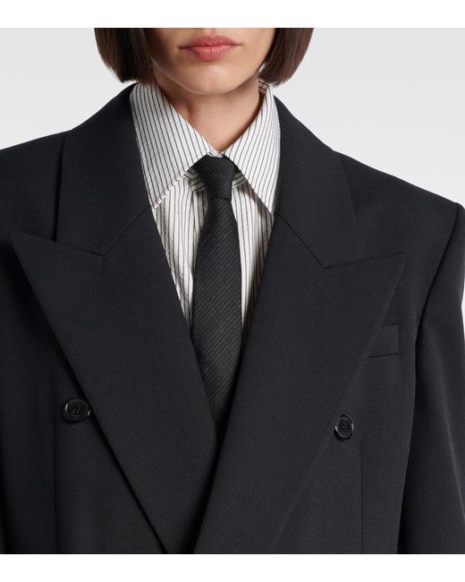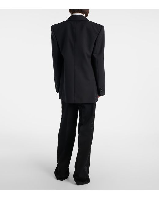 Material: 100% wool. Care instructions: dry clean. Made in Italy. Designer color name: Noir. Item color: black. Lining: 100% silk. Sleeve lining: 97% silk, 3% polyester. Pocket lining: 97% cotton, 3% elastane. Contains non-textile parts of animal origin. Pockets: internal pockets. Peak lapel. Fully lined. Shoulder pads.