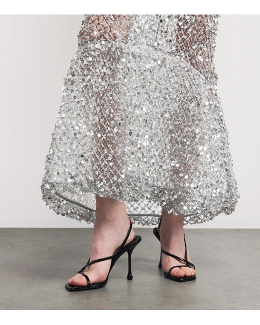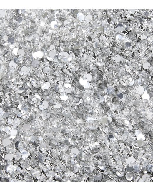 A hint of sparkle is always expected from lapointe, but this sculpted midi dress elevates the trope to soaring new heights. Built on a silver-tone mesh frame, it effortlessly hugs your curves before flaring into a sculpted fishtail hem while thousands of hand-applied sequins mimic iridescent fish scales.