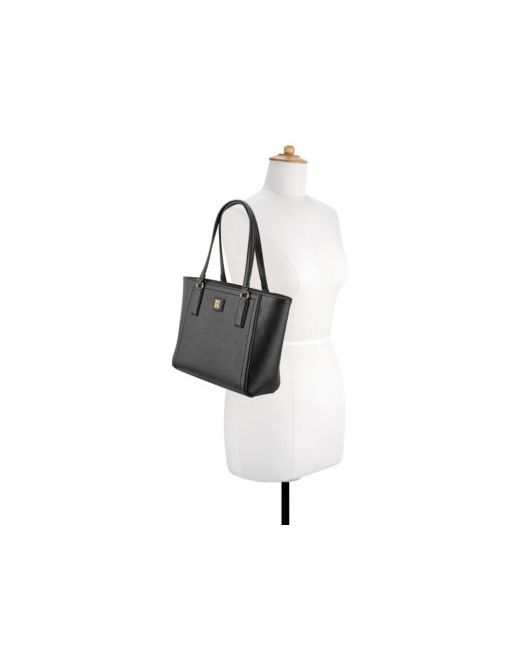 Nine West designer Coen small tote, great shopper style silhouette with triple compartment details. Perfect for everyday work, beautiful durable saffiano material and gold hardware.