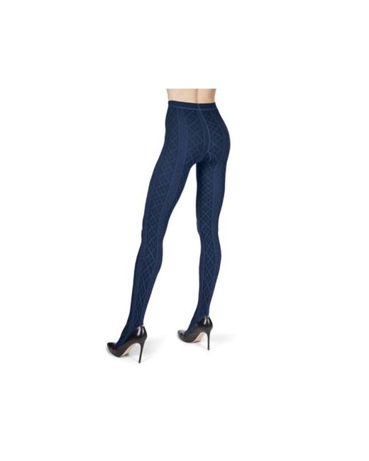 Women's Dark Blue Crossing Diamond Patterned Sweater Tights