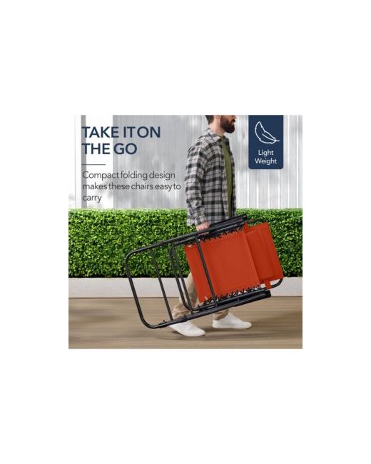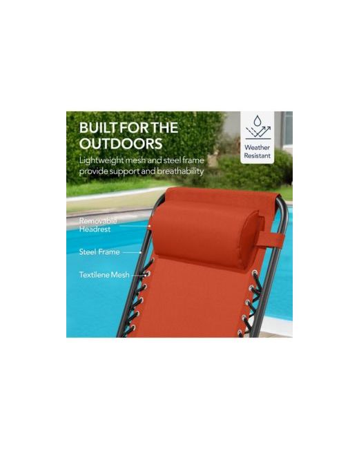 Orange Folding Outdoor Zero Gravity Rocking Lounge Chair w Headrest Pillow