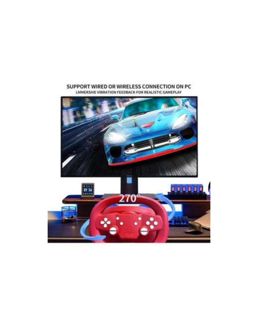 The Switch Steering Wheel enhances gaming with dual wired/wireless connectivity (Bluetooth 5.0, 8m range) and wide compatibility (Switch, Pc, PS3/PS4, mobile). Designed for Mario Kart fans and kids, it features adjustable vibration, cat ear LEDs, and 270° rotation for immersive play. Its plug-and-play setup, programmable buttons, and anti-drift sensitivity ensure smooth control, while the durable build fits most setups. Enjoy peace of mind with 24/7 support and a 12-month warranty.