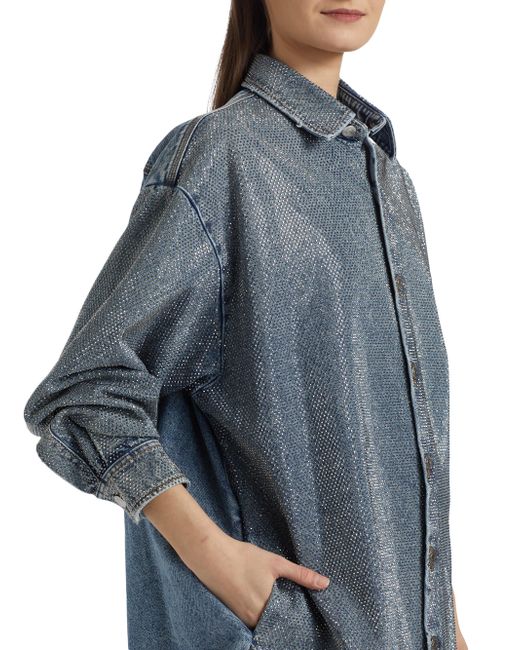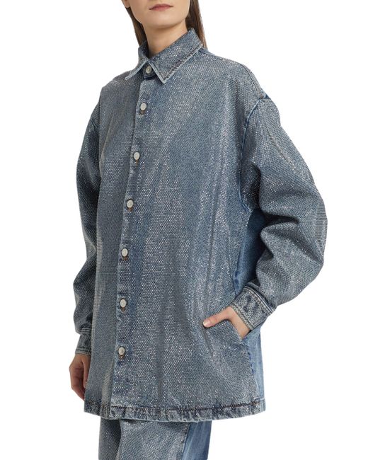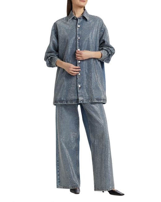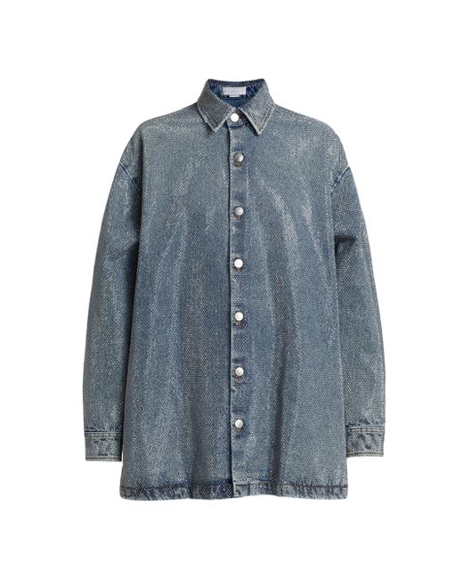 Made in Italy, this Stella McCartney denim button-front oversized shirt is embellished with hotfix studs. Spread collar Long sleeves, button cuffs Button-front closure 100% cotton Trim: 100% plastic Dry clean Made in Italy SIZE & FIT Model measurements: 5'10" tall Model is wearing a US size Small ABOUT THE BRAND From interning at Christian Lacroix at 16 to her role as Chloé's Creative Director, Stella McCartney made a name for herself in the fashion industry well before the launch of her own brand in 2001. Since its inception, McCartney has remained dedicated to sustainability and taken an ethically minded design approach-never using leather, feathers, skin or fur in any of her pieces. Today, the brand is renowned for its bold, feminine ready-to-wear and accessories, as well as its foray into menswear, kids' clothing and fragrances. Advanced European - Stella Mccartney Rtw > Stella Mccartney > Saks Fifth Avenue > Barneys. Stella McCartney. Color: Vintage Blue Denim. Size: Large.